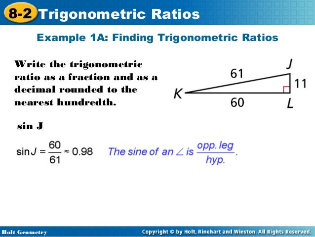 8 2 Trigonometric Ratios Holt Mcdougal Geometry Holt Geometry Ppt Video Online Download